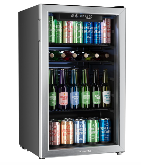 The hOmeLabs Beverage Refrigerator and Cooler is a sleek and functional upgrade that instantly elevates any kitchen, home bar, or office. With room for up to 120 cans, this mini fridge is perfect for keeping your favorite drinks chilled and within reach. Its glass door design adds a modern touch while letting you easily see what’s stocked inside. Adjustable and removable shelves make it easy to customize the space for cans, bottles, or a mix of both. Whether you’re entertaining guests or just want a dedicated spot for sodas, beers, or wine, this compact cooler adds both style and convenience to your space.